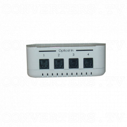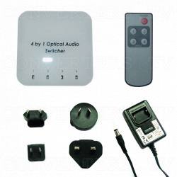 The Optical Audio Switcher 4 In 1 Out with Remote Control is the 2011 from our optical range of Audio converters/switchers. Designed to accept up to 4 digital audio streams via four TosLink input cables and by switch or remote control selection, it can direct the required digital audio stream to one TosLink output cable connected to your amplifier or active speaker. The device will work with audio formats PCM2, AC3/5.1, Dolby 5.1 & DTS 5.1 pass through.