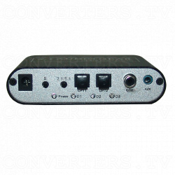 - Audio Inputs: Button for 2 x Optical TOSlink SPDIF (Opt1 & 2); 1 x Co-axial (Cox), 1 x 2 CH Stereo (Aux) input selection