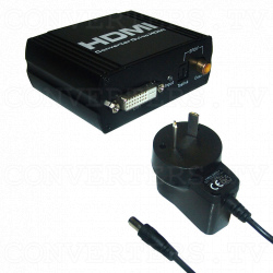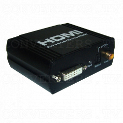 The DVI to HDMI Converter accepts digital DVI video and unbalanced audio and converts all to HDMI video/audio interface standard. Video and audio signals from PC's and HD players outputting resolutions from VGA ~ UXGA-WUXGA and 480i/p ~ 1080i/p, are converted automatically to the same HDMI resolution + LPCM audio signal, to connect to your HDMI TV.