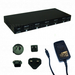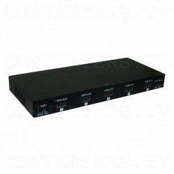 The HDMI v1.3 1 In 8 Out 2D-3D Splitter is designed to duplicate one HDMI video/audio signal into eight equal HDMI video/audio signals, for display on up to eight High Definition LCD or Plasma displays using HDMI cable up to a distance of 15 metres.