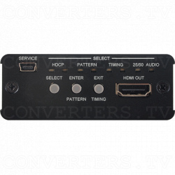 The HDMI 6G Audio Bridge with Pattern Generator fully incorporates digital and analog audio inputs for embedding into an HDMI output. The colorful LED readout of the HDMI 6G Audio Bridge with Pattern Generator allows fast and easy selection of patterns and quick viewing of the current status.